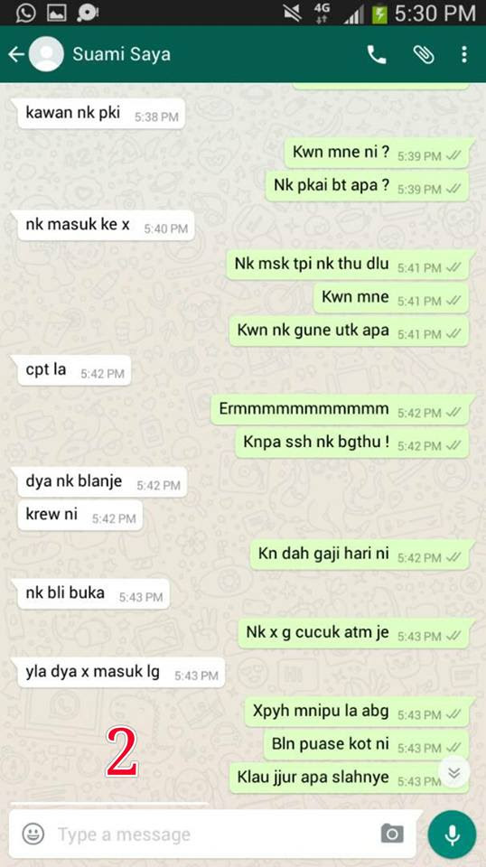 "Sudah hampir tiga tahun saya berhatan. Ini antara WhatsApp yang dia hantar pada saya sebentar tadi sebelum dia block saya," tulis confessor di Kisah Rumah Tangga.